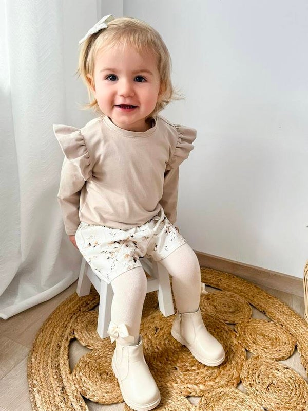Zeer mooie broekrok in jerseykwaliteit met jasmijn bloemetjes. Gecombineerd met de tshirt offwhite of tshirt kiezel/beige met franjes is dit een zeer mooie outfit.