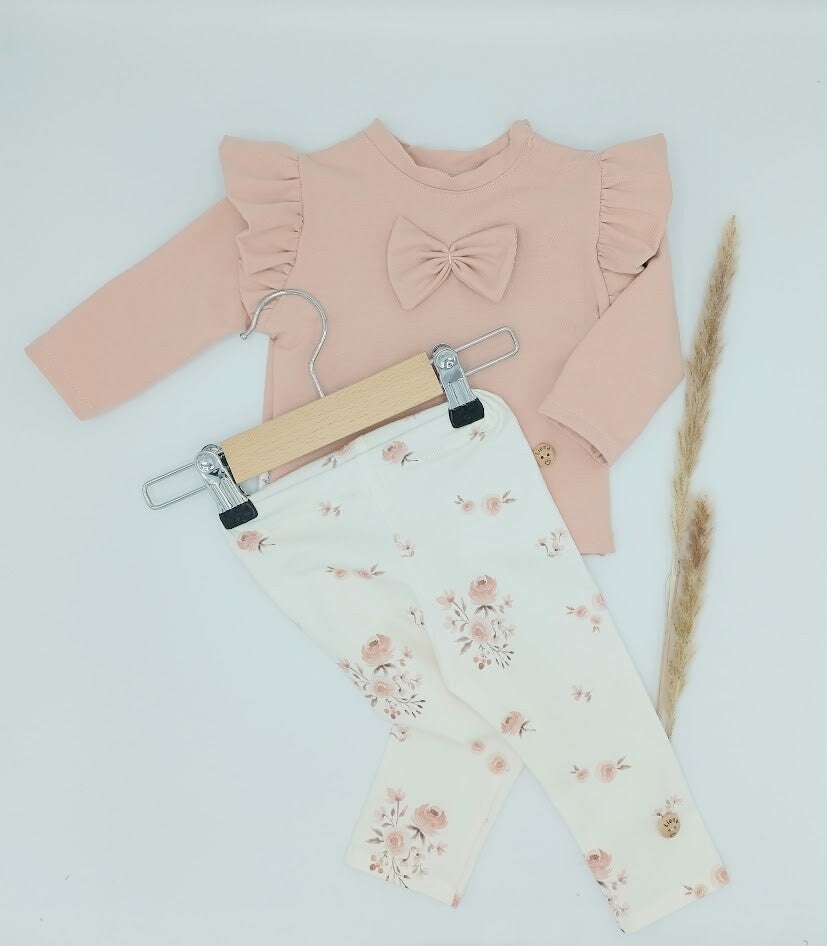 Annelou draagt de zeer mooie roosjeslegging gecombineerd met de roze tshirt. Franjes op de schouder en een strikje maken het af.