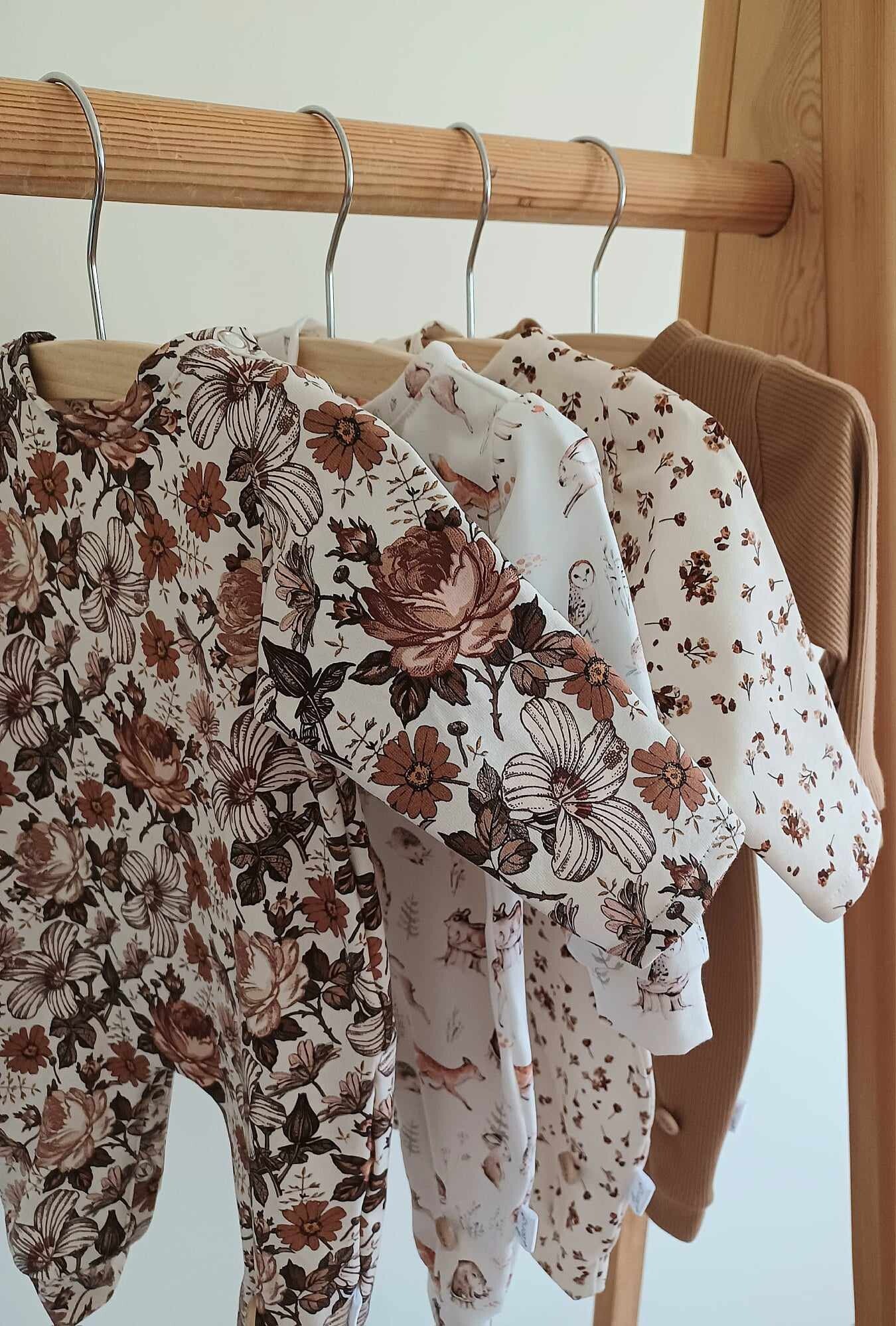 Een prachtige stof met bosdieren. Het kruippakje heeft knoopjes vooraan en drukknopen tussen de beentjes maar zonder voetjes. Ook inzetbaar als legging of tshirt.