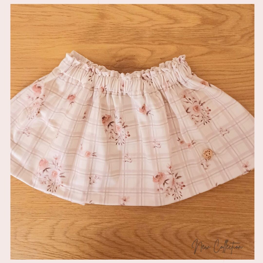 Dit is een zeer mooie tricotstof met ruitje en roosjes. Gecombineerd met een tshirt in neutraal beige is dit een topoutfit.