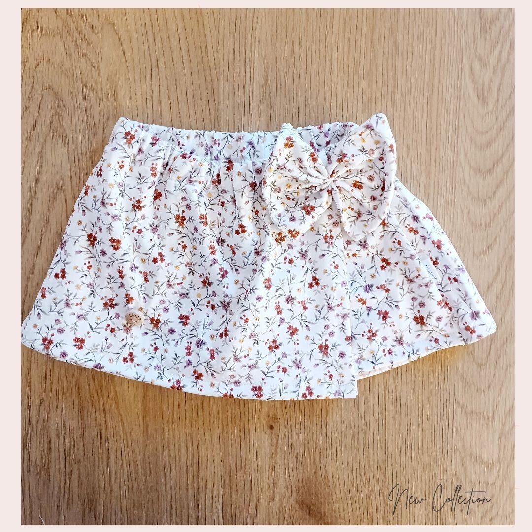 Het broekrokje is terug van weggeweest. Onder het flapje vooraan, zit een broekje. Bovenaan zit er een elastische band en er is een grote strik opgenaaid. Kan ook zonder strik.