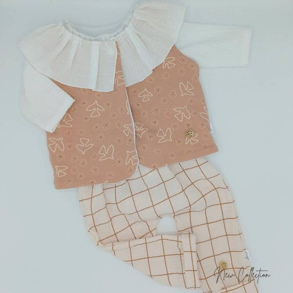 Is een prachtig setje samen met broekje ruiten en witte mousselinebloes.