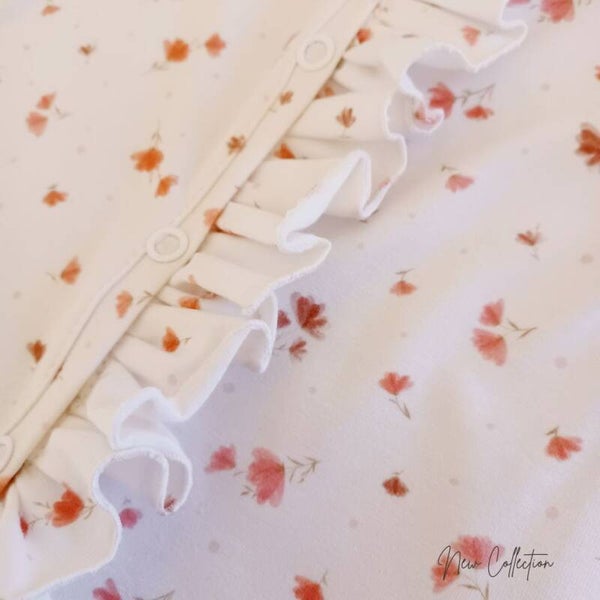 Kruippakje bloemenhartjes met franjes aan de voorzijde.