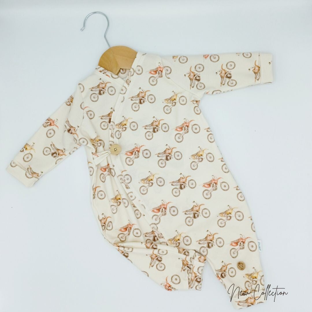 Een nieuw model kruippakje overslag zonder drukknopen.