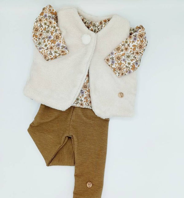 Legging in chocolade mélee kleur, combineert mooi met mousselinebloesje, bontje zonder mouwen of met truitje in breiwerk.